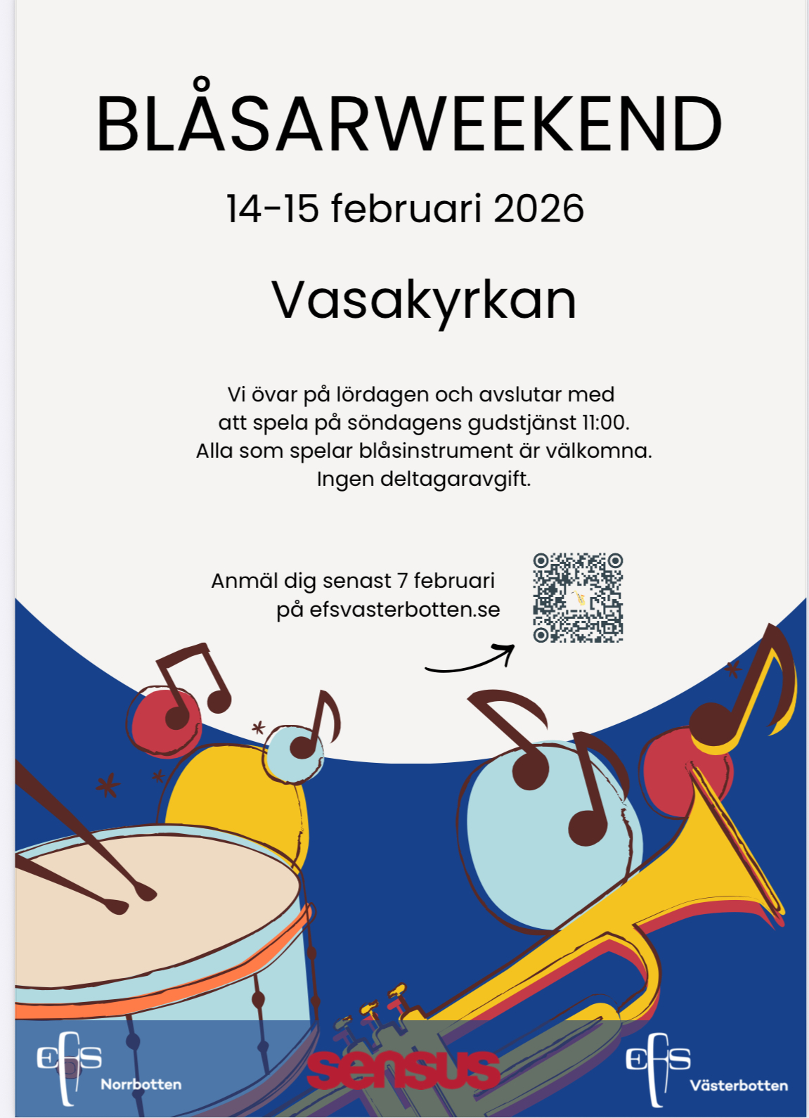Vi övar på lördag och spelar på söndagens gudstjänst. Alla som spelar blåsinstrument är välkomna.